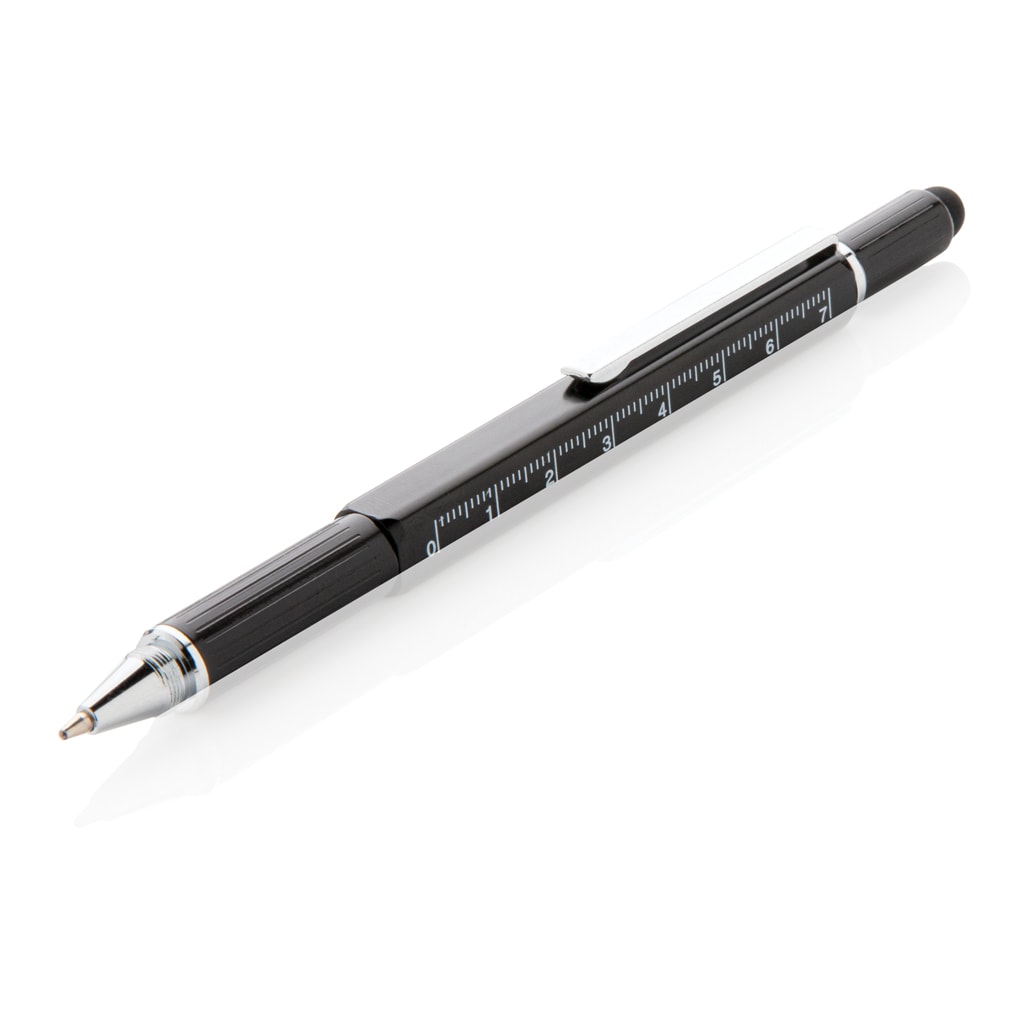 Večnamensko pisalo z ravnilom, pisalom za zaslon na dotik, izvijačem in libelo. Iz trpežne medenine. Kreativen in uporaben promocijski izdelek.