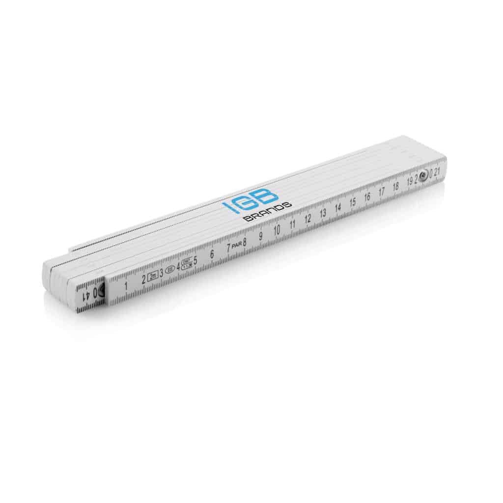 2-metrsko belo zložljivo merilo s potiskano lestvico. Klasičen in funkcionalen promocijski izdelek.