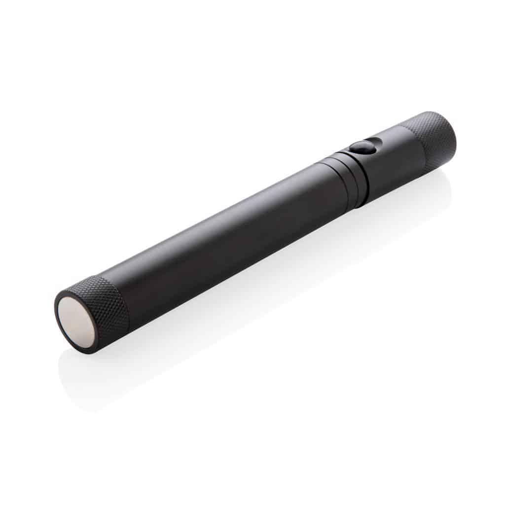 Lastnosti izdelkaMaterial: Aluminij Barva: črna Dimenzije: 17.3 x ø 2.1 cm Teža (g) / Gramatura (g/m2) / Kapaciteta (ml): 139.2 Personalizacija: Lasersko graviranje 2, tampon tisk Dodatne informacije: / |